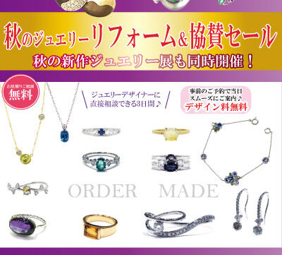 【10月3日(金)~10月5日(日) カジタ ポートプラザ店】 ずっと引き出しにずっとしまい込んだままの宝石たち。秋の衣替えの季節、ジュエリーも整理整頓しませんか。 ジュエリーリフォームは出番を失ったジュエリーを、大切...