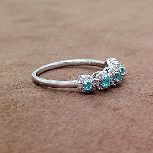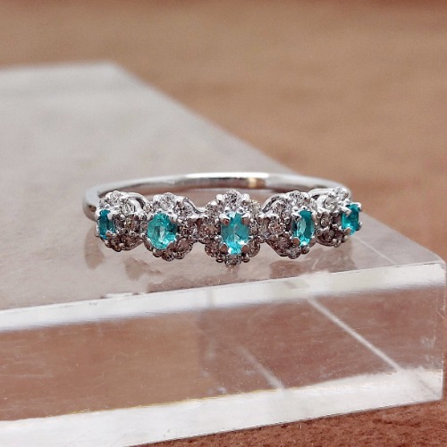 小粒のパライバを連ねたデザインで光がリズミカルに流れるような可憐な印象を与えてくれます。