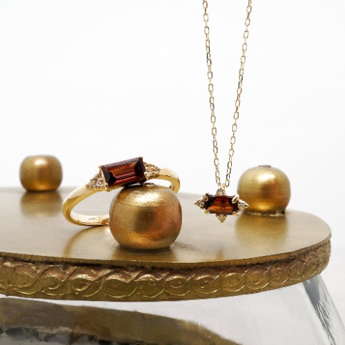 サイドにはダイヤモンドをセットし、透明感のある輝きが加わることでガーネットの色艶がより一層美しく際立ちます✨