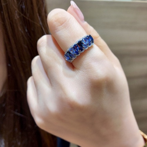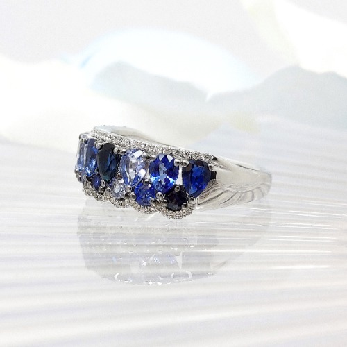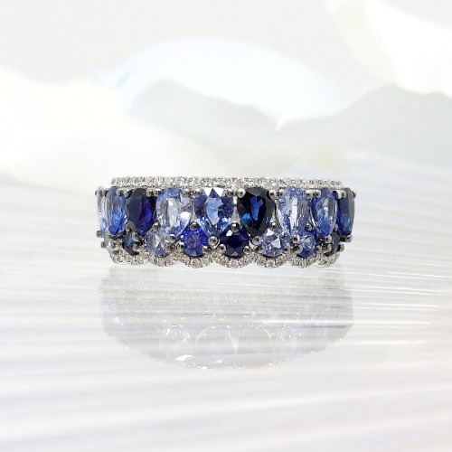 濃淡の異なるサファイアを贅沢にあしらい、グラデーションの美しさが際立つリング。