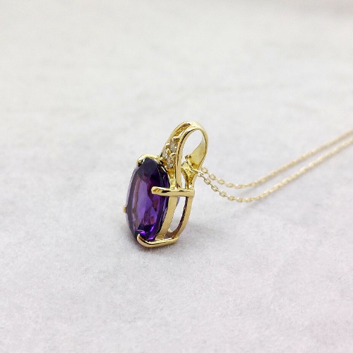 オーバルカットのアメジストが光を受けるたびに気品ある輝きを放ちます。