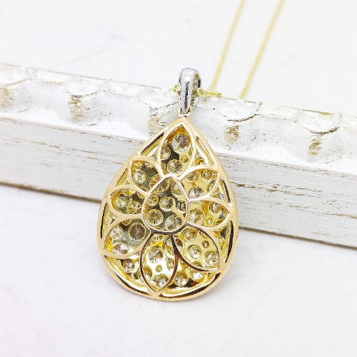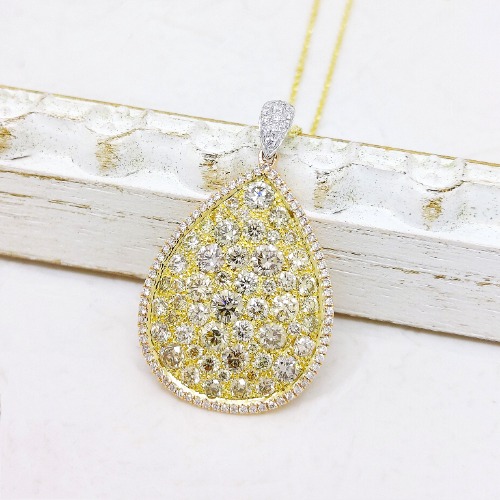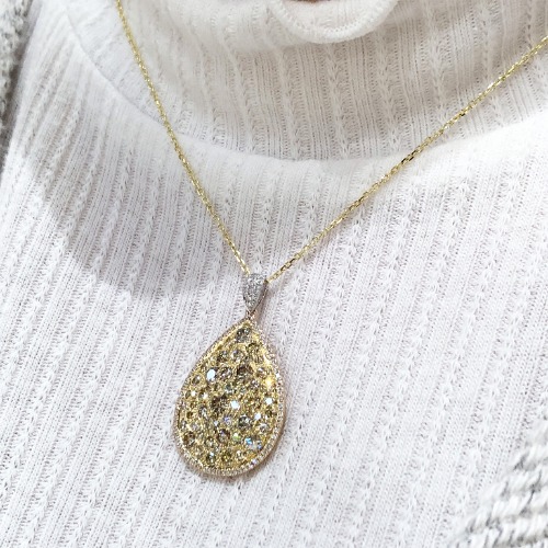 しずくモチーフにカラーダイヤモンドをセットしたパヴェネックレス。