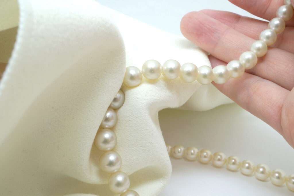 使用後は柔らかい布で汗や皮脂を拭き取り直射日光や湿気を避けて保管する。ほんの少しの心遣いで、真珠は何年経っても美しく輝き続けます。