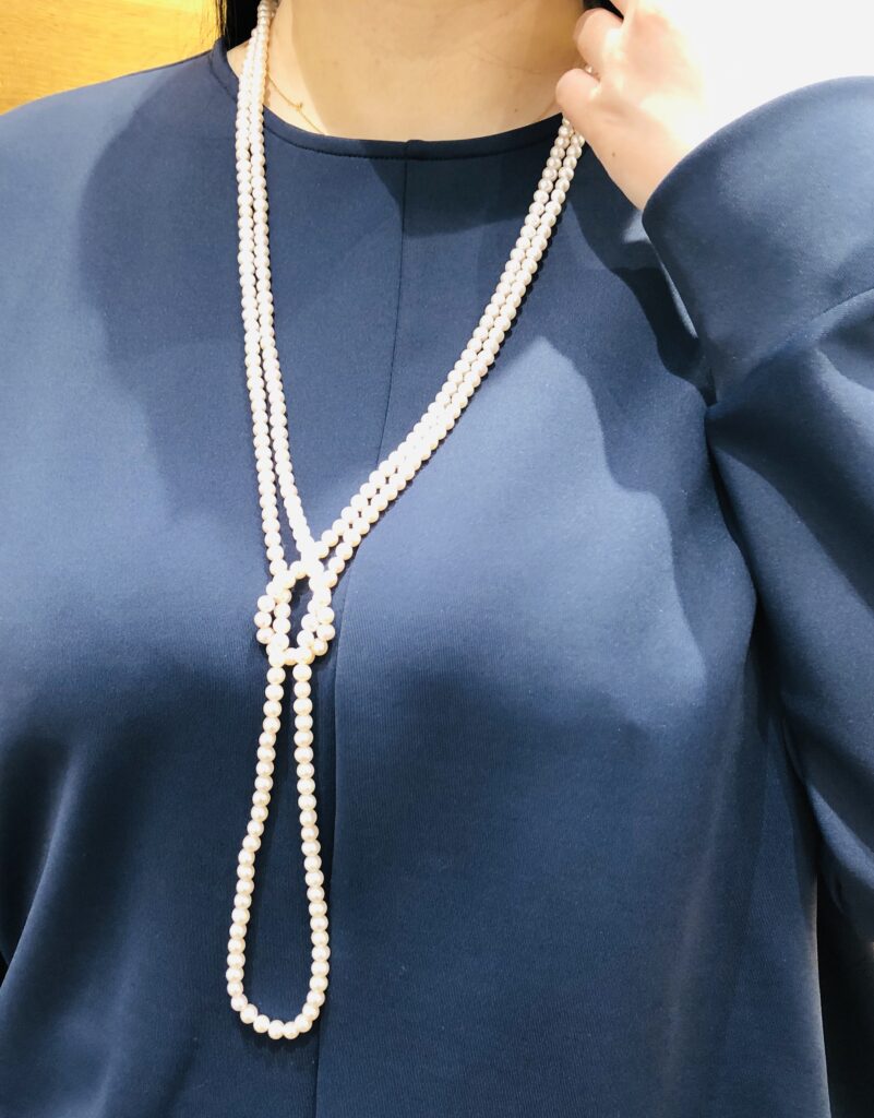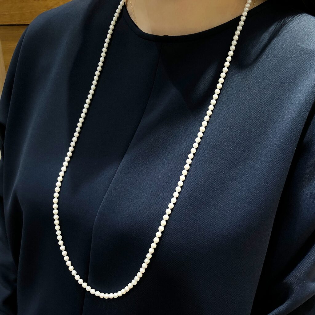 一連パールを一本持っているだけで、長さの変化や他のジュエリーとの組み合わせ次第で印象は驚くほど変わります。