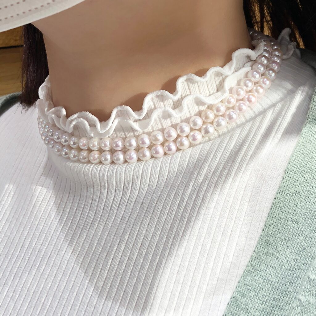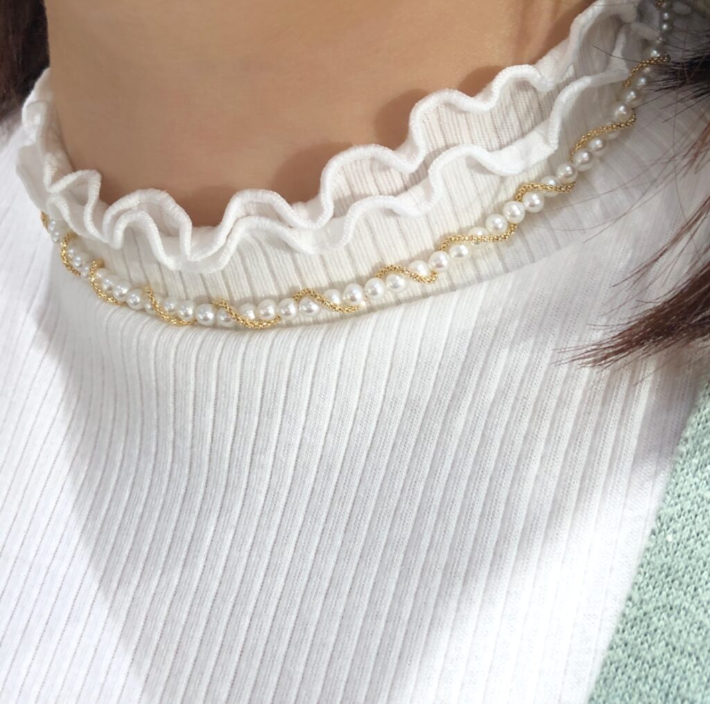 長さに余裕のあるパールネックレスなら、二重に巻いてショートタイプとして使うのもおすすめ。