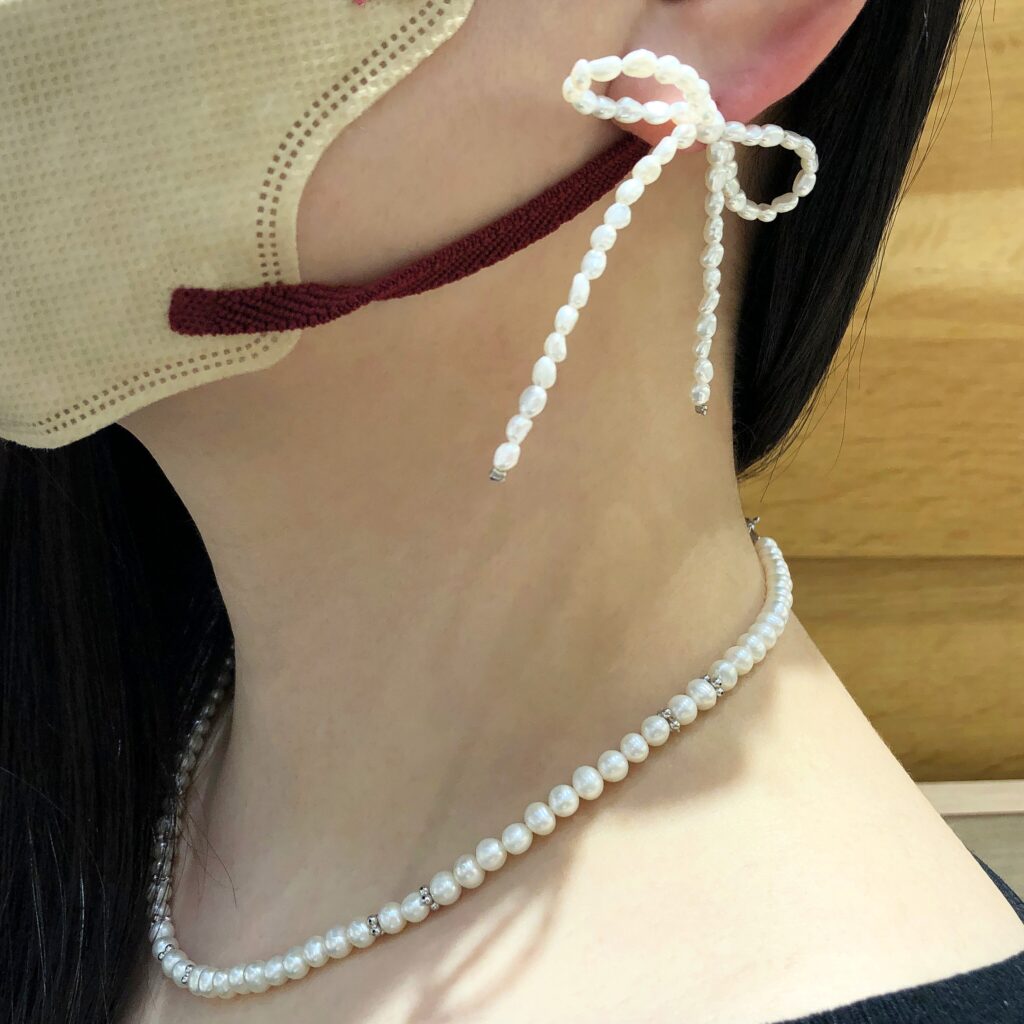 ピアスやイヤリング、ブレスレットなど、他のパールアイテムと組み合わせることで統一感が生まれます。