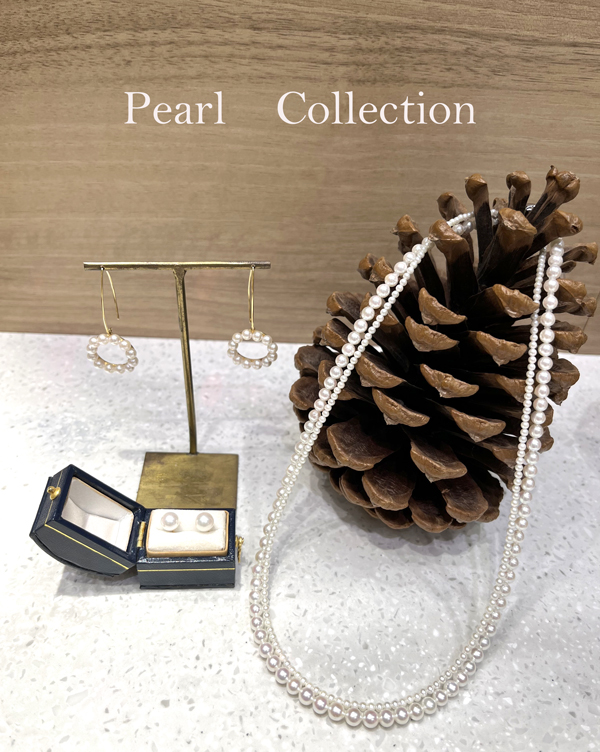 今季特におすすすめは、ベビーパール!冠婚葬祭で着けるようなフォーマル感なく、さりげなさがちょど良いと年齢問わず人気です。一粒のパールピアスが、耳元にあるだけで、普段のお洋服を格上げしてくれます。この時期だと、細いチェーンだとよれてしまう薄手のニットやタートルネックの上でも、ベビーパールのネックレスは綺麗なアーチを描き相性抜群です。5mm以下と小粒なので、地金のロングチェーンとのレイヤード(重ねづけ)や、粒の大きさが違うパールネックレスなどと合わせると小粒でも可憐に輝き、日々の装いをグッと華やかに見せてくれますよ♪