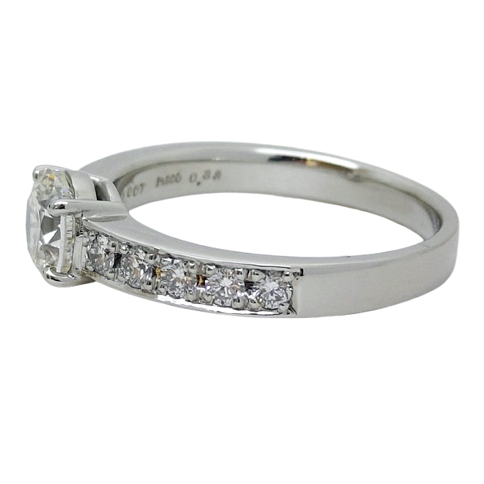 以前当店のホームページをご覧になり、ご主人様とご一緒にリフォームの相談にご来店されました。ちょうどフェアが近かったので、日を改めて即日お見積りが出せるリフォームフェアに足をお運びいただきました。当初はシンプルなリングをご希望されていたのですが、お話をしているうちにリングのアーム部分にTotal0.88ctのラージメレダイアを追加し、豪華でエレガントな印象を与えるデザインをおすすめいたしました。お渡しの際は、出来上がりをとても喜んでいただきました。これからも、末永くご愛用いただきたいです♡(②へつづく)