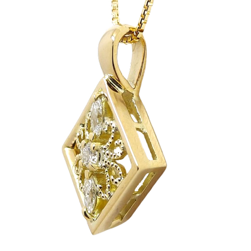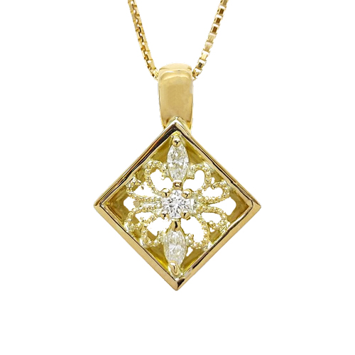 当店のリフォームフェアへご来店いただきました。まず、プラチナの婚約指輪の中石と地金を使用して雫型が上品なダンシングストーンへ、婚約指輪の脇石(マーキスカット)とお母様の形見のK18ダイアモンドリングを使用して透かしのペンダントトップ2点を作成されました。それぞれ元枠の地金を溶かして作成されたことにより、リフォーム費用を抑えられたのでチェーンご購入に当てていただきました。ご自身とお母様の思い出の品がよみがえり、出来上がりを大変お喜びいただきました♪